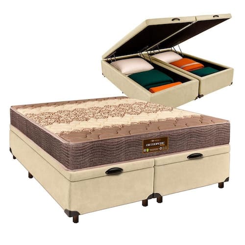 Suporta até 120kg, ideal para uso frequente com firmeza equilibrada Base baú Queen com 42cm de altura e amplo espaço interno para organização