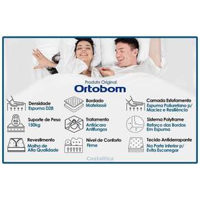 Suporte de Peso: - 150 kg Espuma de Estofamento: - Alta Qualidade, D28 Nível de Firmeza do Colchão: - Extra Firme Tipo de Estrutura Interna: - EPS Tipo de Espuma: - Espuma de Poliol Vegetal Estrutura Bloco de Espuma: - EPS Densidade da Espuma: - D28