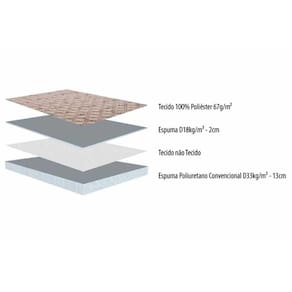 CARACTERÍSTICAS INTERNAS DO COLCHÃO Tipo de Estrutura do Bloco de Espuma - D33 Outras Características Internas - Espuma de Poliol Vegetal - Espuma sem CFC