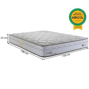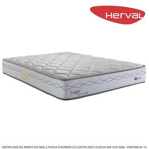 Tampo tecido malha: 100% poliéster. Faixa tecido plano: 100% poliéster. Bordas de espuma de alta densidade. Estrutura da base em madeira eucalipto de reflorestamento e chapa multilaminada.Colchão Queen Herval Molas Maxspring Luiggi, 25x158x198 cm