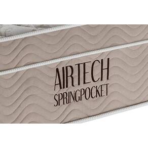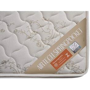 Colchão Airtech tem sua estrutura composta por Molas ensacadas individualmente, que fazem o peso de um corpo não interferir no conforto do outro, proporcionando um perfeito suporte para a coluna e conforto para qualquer biótipo, possui Ortopillow e em sua camada de conforto espuma D26 Pró Aditivada de Alta Performance, bordado em matelassê e placa Eps. Seu tampo é em malha de alta qualidade e lateral em Camurça, apresentando um toque refinado ao colchão. Possui a tecnologia No Turn, que dispensa a necessidade de virar o colchão. O Airtech Spring recebe tratamento antialérgico e antiácaro, ajudando a reduzir os problemas respiratórios. Ideal para suas confortáveis noites de sono.