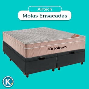 Colchão Queen Molas Ensacadas + Bau Blindado - Airtech Ortobom Conjunto Queen Colchão Airtech + Cama Box Bau Colchão Ortobom Queen com 25cm de altura, ideal para conforto no uso diário