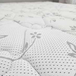 Tecido em malha construída com multifilamentos de poliéster o que proporciona uma malha resistente e com toque macio aumentando a durabilidade do seu colchão.