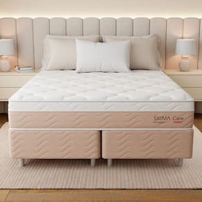 Que tal o Colchão Sigma Care?Além de ser essencial para uma boa noite de sono, o Colchão Sigma Care também é o toque que completa o visual do dormitório: o modelo combina design elegante e acabamento sofisticado com estrutura preenchida em espuma e molas ensacadas que oferecem comodidade personalizada, garantindo noites tranquilas e manhãs cheias de disposição. O revestimento é feito com tecido que recebe o tratamento antisséptico VbacBLOCK, que é antialérgico e antiácaro - pensado para inibir maus odores e facilitar a higienização, ele reduz a poeira aparente no colchão e promove um descanso livres de desconfortos respiratórios. Macio, aliado da saúde e com visual de bom gosto, ele é indispensável para quem quer relaxar sem preocupações.
