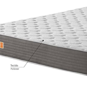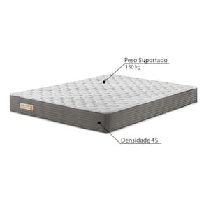 Características - Tratamento antiácaro, antifungo e antialérgico. - Espuma: Fabricada com alta tecnologia selada e certificada pelo INMETRO, garante ótima durabilidade e qualidade. - Densidade 45 - Tecido Malha 100% Poliéster. - Peso suportado por pessoa 150 kg.