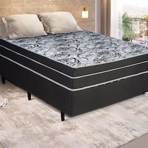 Colchao Queen Size Molas Ensacadas D28 Suporta 100kg Antiderrapante Cinza Floral - Cinza | Branco