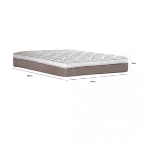 Características: Pillow Top One Side No bordado laminas D20 Revestimento em tecido Jacquard Suporta peso de até 110Kg Espuma Ecospuma Nivel de conforto: firme Molas ensacadas Forro Antiaderrapante Fibra de poliéster Feltro resinado Camada de espuma localizada na parte superior do colchão, sobre o molejo, Por sua concepção não há necessidade de virar o colchão, apenas gira-lo periodicamente para garantir que a espuma se acomode de forma mais uniforme