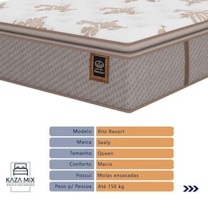Combinando tecnologia de ponta, materiais de alta qualidade e proteções integradas, o Colchão Ritz Resort Sealy surge como a escolha perfeita para quem busca uma boa noite de sono e uma experiência de descanso luxuosa e rejuvenescedora.