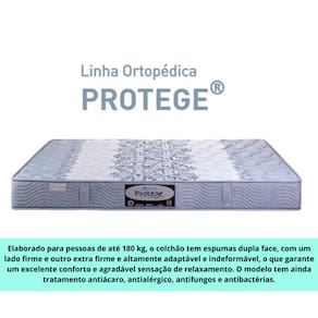 Elaborado para pessoas de até 180 kg, o colchão tem espumas dupla face, com um lado firme e outro extra firme e altamente adaptável e indeformável, o que garante um excelente conforto e agradável sensação de relaxamento. O modelo tem ainda tratamento antiácaro, antialérgico, antifungos e antibactérias.