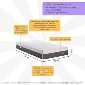 Colchão Solteirão Bed In a Box Enjoy Smartmax 96x203cm Espuma Mista Inducol CR449B - Branco