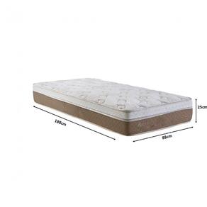 Contem camadas de espuma de média densidade, que deixam o colchão com maior resistência e toque confortável. Molas Maxspring. Sistema de molejo contínuo. São 206 molas p/m² com arame ATC (Alto Teor de Carbono) 2,00 mm de diâmetro. Um corpo único, monobloco, de molas entrelaçadas, em aço, submetido a processo de alívio de tensão. Tecnologia Europeia, que resulta em resiliência uniforme e perene. Beneficio: alto suporte ao colchão e conforto contínuo a seus usuários, mesmo com o passar do tempo Colchão Pillow Top One Side. Camada de espuma localizada na parte superior do colchão, sobre o molejo, proporcionando excelente conforto ao usuário. Por sua concepção, na sua manutenção não há necessidade de virar o colchão, apenas girando-o de vez em quando Abertura para Ventilação: Sim Altura: 25 cm Antiácaro: Sim Antialérgico: Não Antifungo: Sim calculo: unidade Certificado: INMETRO Cr: Bege Cr do Produto: Bege Itens Inclusos: 1 Colchão de mola. Largura: 88 cm Linha ou Coleção: Mola Necessita Montagem: Não Nível de Conforto: Intermediário Origem do Produto: Nacional Ortopédico: Não Peso: 13 Pillow: Euro Possui Certificado: Sim Precisa virar: Não Profundidade: 188 cm Recomendações de Uso, Manutenção e Limpeza: Revestimento em tecido Jacquard. Os tecidos Jacquard possuem desenhos com os mesmos fios utilizados. Esse entrelaçamento garante maior durabilidade, já que a posição dos fios o torna mais complexo e resistente. De toque macio, produzindo uma sensação maior de conforto, liberdade de movimentos durante o sono, além de ótimo acabamento, beleza e sofisticação ao colchão. No bordado conta também com lâminas de espuma de alta performance D20 proporcionando mais conforto Revestimento: Poliéster Suporta Até (kg): 110 kg Tamanho: Solteiro Tipo do Colchão: Mola