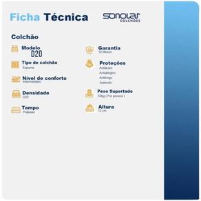 Experimente o conforto e a qualidade do Colchão Solteiro D20 Gazin Sonolar Espuma Supreme 78x188x12cm. Ideal para quem busca um descanso revigorante.