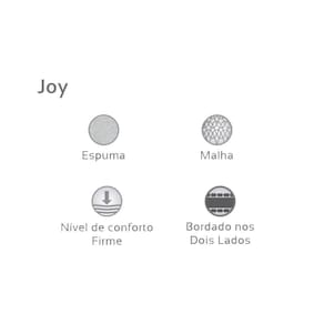 BENEFÍCIOS EXTERNOS DO COLCHÃO Tipo de Bordado do Tecido de Revestimento - Contínuo Tipo Tecido de Forração Revestimento - Poliéster Tipo de Tecido de Revestimento da Faixa Lateral - Poliéster Tecido com Tratamento - AntiÁcaro e AntiFungo Modo de Utilização - Double Side
