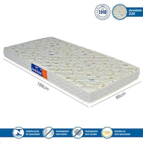 O Colchão Probel Guarda Costas Solteiro oferece conforto e suporte excepcionais para uma noite de sono revigorante. Fabricado com espuma D20 de alta qualidade, este colchão proporciona uma base firme e aconchegante, ideal para garantir o descanso necessário.
