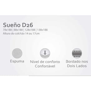 CARACTERÍSTICAS INTERNAS DO COLCHÃO Tipo de Estrutura do Bloco de Espuma - 26 Camadas Interna do Estofamento de Espuma - D18 Outras Características Internas - Espuma sem CFC