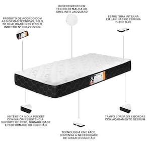 Por ser um colchão one face, você não precisa girar, basta fazer o rodízio da cabeceira para os pés e vice-versa, prolongando a durabilidade e adaptando-se às suas necessidades. Além disso, estrutura interna, feita com lâminas de espuma D33, proporciona um suporte ideal, enquanto a faixa lateral com tecnologia Aria 3D garante uma ventilação constante, criando um ambiente fresco e aconchegante. E o acabamento? Um verdadeiro espetáculo! Com bordado contínuo e debrum que reforçam as bordas laterais, o colchão solteiro exala elegância e estilo, elevando a decoração do seu quarto a um patamar.