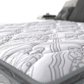 A primeira camada conta com conforto extra em Pillow Super e matelassê preenchido com fibra siliconada e espuma D20 Cilíndrica. Seu revestimento em malha branca com detalhes na cor cinza (E3) possui gramatura 220 gramas e finalização com bordado em formato de raio. O tecido em malha apresenta excelência em sua elasticidade e flexibilidade, o que o torna um material confortável e harmonioso no contato com a pele.