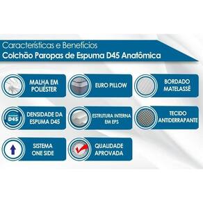 Colchão Solteiro Espuma D45 / Ep Anatômico Conforto Mega Firme Euro Pillow (88x188x25) - Paropas