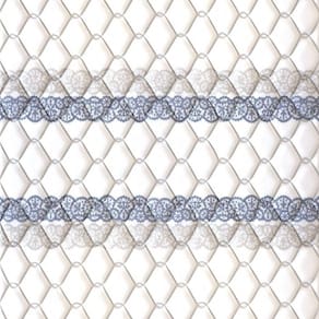 Tecido em Poliéster: O tampo em poliéster branco com detalhes em azul e cinza oferece um visual moderno e elegante, além de ser resistente e fácil de manter, com gramatura de 120 g/m.