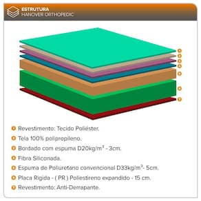 Atraves da utilizacao das espumas mais avancadas do mercado, o colchao Hanover Orthopedic oferece um nivel de conforto excepcional. Em comparacao aos colchoes de molas, os modelos de espuma se destacam por sua firmeza, o que resulta em um sono profundamente revigorante para nossos clientes.