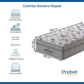 A espuma do Colchão Solteiro Napoli foi desenvolvida com a Tecnologia ProMax Probel, que passa por rigorosos testes de qualidade em laboratório e recebe tratamento antiácaro e antifungo.