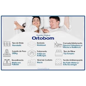 Poliéster, Espuma de Poliol Vegetal, Manta Acrílica, Reforço PolyframeVendido e entregue por Costa Rica Colchões