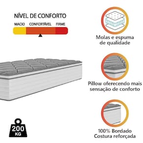 MODELO: Colchão Solteiro Molas Com Pillow Max Force 88x188x27cm Suporta Até 200 Kg Por Pessoa