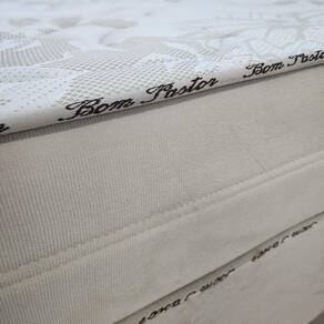 Estrutura em molas ensacadas individualmente e borda lateral em espuma de alto resiliência.