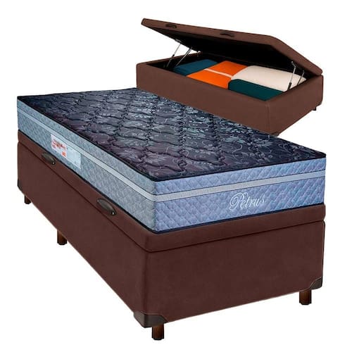 Colchão Solteiro Molas Ensacadas + Bau Blindado - Petrus Paropas Conjunto Solteiro Colchão Petrus + Cama Box Bau Colchão solteiro com 30cm de altura, ideal para quem busca conforto e robustez