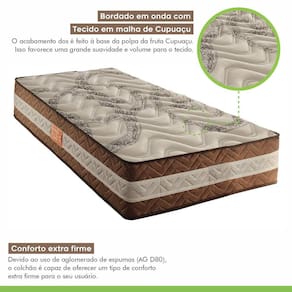 O quarto perfeito só está realmente completo com um colchão que acomode muito bem o corpo, e o modelo Samambaia é a pedida certa para completar seu cantinho de descanso! Feito para trazer a sensação de acolhimento e te proporcionar noites de sono realmente revigorantes, ele conta com espuma na densidade ideal para deixar o bem-estar na medida certa, que garante ainda mais aconchego. Enquanto isso, por fora, possui tecido de toque agradável, que torna seus momentos relax ainda mais prazerosos. Perfeito, né? Agora, só resta combiná-lo com um travesseiro bem confortável e um jogo de cama macio para aproveitar o sono que você merece :) Abertura para Ventilação: Não Ambiente Principal: Quarto Antiácaro: Não Antialérgico: Não Antifungo: Não Certificado: Produto certificado conforme Portaria 75 de 05/02/2021 - Certificação Compulsória de Colchão - Desempenho OCP - TS4 0134 Cor: Rustico Cerejeira Cor do Produto: Rustico Cerejeira Informações Complementares: Produto Uniface Itens Inclusos: 1 Colchão e Certificado de Garantia e Uso Necessita Montagem: Não Nível de Conforto: Firme / Extra Firme Origem do Produto: Nacional Peso: 35,53 Pillow: Pillow Possui Certificado: Sim Precisa virar: Sim Recomendações de Uso, Manutenção e Limpeza: Recomendações indicadas no manual de garantia e uso Revestimento: Malha 100% Poliéster Tamanho: Solteiro Tipo de espuma: Espuma Poliuretano Tipo do Colchão: Mola Marca: Ecosono