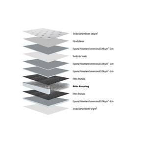 COLCHÃO (BENEFÍCIOS) Vantagens Extras de Colchão - Tecnologia Européia Tipo de Pillow - Pillow Top Americano Tipo de Bordado do Tecido de Revestimento - Localizado Tipo Tecido de Forração Revestimento - Malha de Alta Qualidade Tipo de Forração do Revestimento Inferior - Antiderrapante Cor do Tecido do Tampo - Cinza Modo de Utilização - One Side