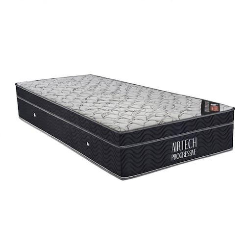 Colchão Airtech Progressive Solteiro (78x188x29) - Estrutura em molas Nanolastic, EPS, D26 Pró - Airtech SOBRE O PRODUTO Novo Colchão Airtech Progressive possui em sua estrura o avançado molejo Nanolastic que tem a menor molécula de carbono do mercado, proporcionando um perfeito suporte para a coluna e conforto para qualquer biótipo, possui Ortopillow e em sua camada de conforto espuma D26 Pró Aditivada de Alta Performance, bordado em matelassê e placa EPS. Seu tampo é em malha de alta qualidade e lateral em Camurça, apresentando um toque refinado ao Colchão. Possui a tecnologia No Turn, que dispensa a necessidade de virar o Colchão. O Airtech Progressive recebe tratamento antialérgico e antiácaro, ajudando a reduzir os problemas respiratórios. Um excelente Colchão para suas noites. CARACTERÍSTICAS Estrutura composta pelo avançado molejo Nanolastic, placa EPS, Ortopillow, tampo em malha, bordado em Matelassê, manta de espuma D26 Pró, faixa lateral em Camurça, No Turn (não precisa virar), tratamento antialérgico e antiácaro. INFORMAÇÕES TÉCNICAS -Estrutura Interna: Molas Nanolastic, placa EPS, Espuma D26 Pró de Alta Performance. -Estrutura externa: Tampo em Malha e feixa lateral em Camurça -Cor: Branco com lateral Preta -Altura: 0,29m -Largura: 0,78m -Comprimento: 1,88m -Peso: 23,4624kg -Capacidade de suporte: 120kg por pessoa -Acompanha: 1 Colchão Airtech Manual -Este produto possui 1 volume CUIDADOS COM O PRODUTO 1. Não coloque seu Colchão sobre estrado inteiriço exceto se utilizado sobre um box. Para melhor durabilidade utilize um box Ortobom. 2. Mensalmente escove e aspire seu Colchão, mantendo-o sempre limpo. 3. Não utilize ferro de passar roupas, secador de cabelos e outra fonte de calor ou vapor sobre o Colchão. 4. Para melhor conservação do produto utilize sempre um protetor de Colchão Ortobom. 5. Nunca dobre ou amasse o Colchão. 6. A cada 3 meses gire o Colchão lateralmente e de baixo para cima (com excessão dos colchões com tecnologia No Turn). GARANTIA 12 Meses contra defeitos de fabricação