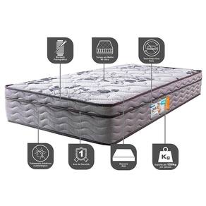 Tipo de Pillow: Euro Pillow: Significa ter um travesseiro Quadrado gigante em cima do colchão. O Euro Pillow é uma camada alta e reta presa ao colchão confeccionado em tecido matelasse bordado e com espuma soft. Tem a aparência de um outro colchão preso ao próprio. Esse Colchão possui Euro Pillow e tem a beleza das linhas clássicas, aliada à tradição e tecnologia.