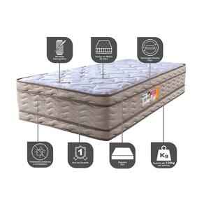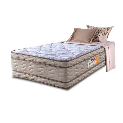 Tipo de Pillow: Euro Pillow Duplo: Significa ter um travesseiro Quadrado gigante em cima e embaixo do colchão. O Euro Pillow Duplo é uma camada alta e reta presa ao colchão confeccionado em tecido matelasse bordado e com espuma soft. Tem a aparência de um outro colchão preso ao próprio. Esse Colchão possui Euro Pillow e tem a beleza das linhas clássicas, aliada à tradição e tecnologia.