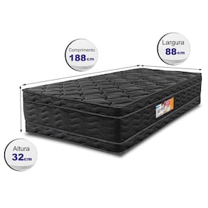 - Conteúdo: 1 colchão Solteiro - Suporta até 120kg por pessoa - Garantia de 1 ano - De Acordo com Certificado de Garantia enviado Junto ao Produto - Atenção: Não nos responsabilizamos, no ato da entrega, por montagem(porém é de fácil montagem), subir escadas/elevadores ou transporte por guincho para apartamentos. Eventuais despesas são de responsabilidade do cliente.