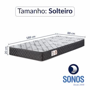 - Modelo: Home 28 Solteiro - Dimensões: 88 x 188 x 20 cm - Estrutura: Espuma D28 - Revestimento: Tecido poliéster - Origem: Indústria Brasileira - Marca: Sonos