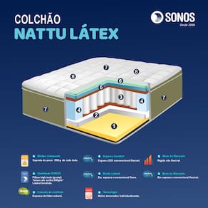 Com o Colchão Sonos Nattu Látex Queen, você garante noites revigorantes, saúde para a coluna e o conforto premium de um produto Sonos.
