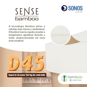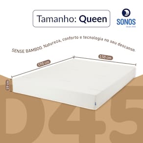 O Colchão Sonos Sense Bamboo Queen 158x198x19cm foi desenvolvido para quem busca mais espaço aliado a firmeza consistente e alta resistência. Sua estrutura em espuma D45 garante suporte uniforme em toda a superfície, proporcionando estabilidade e longa vida útil.