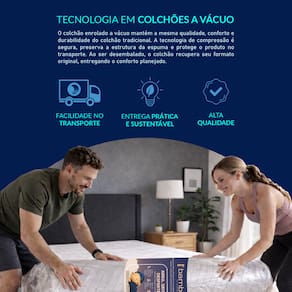 - Estrutura firme em espuma D45 - Sustentação uniforme em toda a área do colchão - Revestimento confortável e respirável - Tecnologia Bamboo aplicada ao tecido - Altura de 19 cm - Enrolado a vácuo - Suporte de até 150 kg por pessoa
