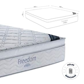 O Colchão Freedom proporciona um alto nível de repouso e conforto das estruturas óssea e muscular. Ele possui em sua área de conforto a espuma Viscoelástica, que absorve os pontos de maior pressão, memorizando os contornos do corpo, proporcionando um sono perfeito, melhor acomodação e diminuindo em até 80% os movimentos noturnos. Sua estrutura em Molas Ensacadas Individualmente funciona de forma independente, mantendo o perfeito alinhamento da coluna durante o repouso, além do movimento de uma pessoa sobre o colchão não interferir no sono da outra. Para completar a sensação de bem-estar ao dormir, o Freedom é revestido por tecido Ecobambu em Malha de Poliéster com Viscose, extremamente macio, tratado com aloe vera, óleo de jojoba e vitamina E, um tecido leve, suave e muito resistente às ações do tempo.