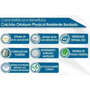 COLCHÃO (CARACTERISTICAS) Camadas Interna do Estofamento de Espuma - Alta Qualidade - HR de Alta Resiliência Tipo de Espuma - Espuma de Poliol Vegetal Densidade da Espuma - 20 Nível de Firmeza do Colchão - Macio c/ Firmeza Peso Máximo Suportado - 60 kg