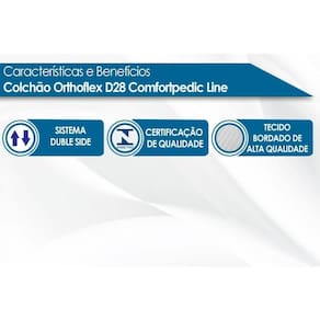 Imagens Meramente Ilustrativas. Não nos responsabilizamos pela montagem/instalação dos produtos. Todas as informações divulgadas são de responsabilidade exclusiva do fabricante/fornecedor. Forração Revestimento do Colchão: Bordado de Alta Qualidade Nível de Firmeza do Colchão: Macio c/ Firmeza Nossa Avaliação do Colchão: Qualidade Muito Boa Peso Máximo Suportado do Colchão: 80 kg Tempo de Garantia do Colchão: 12 meses Certificação de Qualidade do Colchão: INMETRO Tecido de Revestimento da Faixa Lateral do Colchão: Bordado Bordado do Revestimento do Colchão: Contínuo Tecido com Tratamento do Colchão: AntiÁcaro e AntiFungo Modo de Utilização do Colchão: Double Side Garantia Legal de Fábrica CDC em Meses: 3 Possui Garantia Complementar de Fábrica após Prazo Legal?: Garantia de Fábrica Com pillow top: Não Densidade da Espuma do Colchão: D28 É duplo pillow: Não É eco-friendly: Sim Está embalado a vácuo: Não Com função de massagem: Não É antiácaros: Sim É ortopédico: Não Este Produto Inclui Travesseiro: Não Este Colchão é Magnético: Não Inclui controle remoto: Não É Antifungos?: Sim Com moldura perimetral: Não Com pegas laterais: Não É one side: Não Número de registro/certificação INMETRO: N/A Tipo de Produto: N/A Estrutura do Colchão: Espuma É kit?: Não Condição do item: Fonte do produto: N/A ID Loja Oficial MELI: 1557 Código universal de produto (GTIN): 7898619900896 Produto precisa de Montagem?: Sim, a montagem é simples mas sugerimos a contratação do nosso serviço de montagem (para os CEPs em que o serviço está disponível) ou de algum experiente de sua preferência Descrição do Tamanho: 14.00x:128.00x188.00 cm Estado de Origem: RJ País de origem: Nacional Peso Produto Com Embalagem (Kg): 25.27 Material para Filtro: N/I Cor Mobly: N/I Condição do Item: Numeral: 0 Não se Aplica: N/A Não Possui: Não Linha/Modelo: Ortho Cor Cnova: Blush Cor Meli: Ciano Categoria - Sub: Colchão de Espuma D28 Categoria - Pai: Colchão Comnto Embalagem: 188.00 Largura Embalagem: 128.00 Altura Embalagem: 14.00 Peso: 25.27 Kg Kit: 0 Peso Real Kg: 25.27 Peso Cubado: 84.22 Volumes: 1 M3: 0.34 Comnto/Profundidade: 188 cm Largura: 128 cm Altura: 14 cm Tamanho Montado: Larg:128.00 x Comp/Prof:188.00 x Alt: 14.00 Comnto/Profundidade Montado: 188.00 Largura Montado: 128.00 Altura Montado: 14.00 MPN: 1107215 Tamanho Cama Colchão: Casal Marca: Ortho Fabricante: Ortho Linha: Ortho