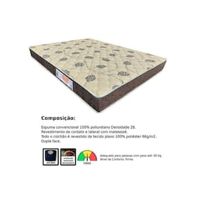 Densidade da Espuma do Colchão - D28 Nível de Firmeza do Colchão - Macio c/ Firmeza Peso Máximo Suportado do Colchão - 80 kg