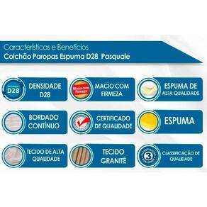 Camadas Interna do Estofamento de Espuma do Colchão - Alta Qualidade Densidade da Espuma do Colchão - D28 Nível de Firmeza do Colchão - Macio c/ Firmeza Peso Máximo Suportado do Colchão - 80 kg