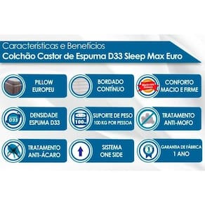 Colchão Viúva Espuma D33 Sleep Max Euro Pillow (128x188x25) - Castor