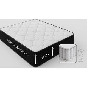 - Proteções: Antiácaro - Antialérgico - Antifungo - Antimofo;- Acabamento: Bordado em Matelassê;- Matéria prima: Poliéster/Bordado;- Mola: Ensacada;- Peso máximo recomendado: até 100kg (por pessoa);- Garantia: 3 meses;- Dimensões do produto (altura x largura x comprimento): 22x128x188cm;