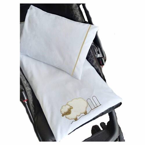 Colchonete de carrinho necessário para o conforto do bebê ,dando a ele mais aconchego e maciez,Ele agora vai dormir tranquilo. E para dar aquele charme preparamos um bordado da ovelha.