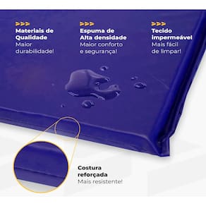 Especificações Técnicas: - Medidas: 90 cm x 42 cm x 2 cm; - Espuma: Alta densidade (D80); - Revestimento: PVC impermeável com poliéster; - Enchimento: Espuma de Poliuretano Aglomerada; - Costura: Reforçada; - Cor: Azul e Preto.