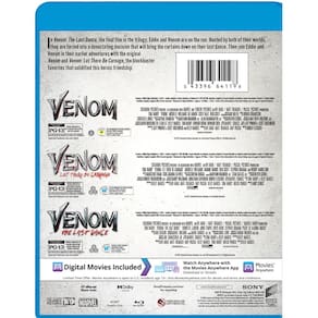 Venom 3-Movie Collection – Blu-ray Multi-feature + Digital - Em Venom: A Última Dança, o filme final da trilogia, Eddie e Venom estão em fuga. Caçados pelos dois mundos, eles são forçados a tomar uma decisão devastadora que vai derrubar as cortinas em sua última dança. Então junte-se a Eddie e Venom em suas aventuras anteriores com o Venom e Venom autênticos: Let There Be Carnage, os sucessos de bilheteria favoritos que solidificou essa amizade heroica.