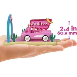 Barbie Mini BarbieLand A coleção de veículos do filme, inclui 8 bonecas de 3,8 cm e 4 veículos inspirados no filme